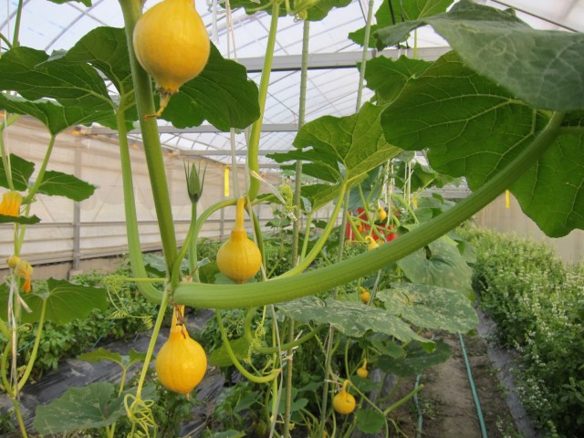 ハウスの中の、コリンキーや、ハーブの苗、バジルの花など、1年半、ファームべジコの野菜やハーブをたくさん使っていただきました。