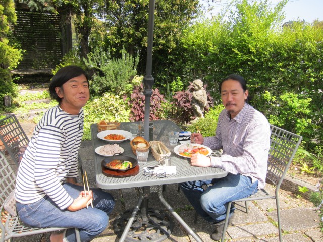 この日志摩くんを春野に連れて来てくれた、市吉さんと一緒に、はるのハーベストのテラス席でランチ。