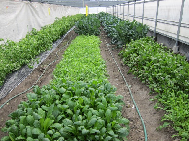 ファームべジコのハウスの中は、いろんな野菜やハーブが、