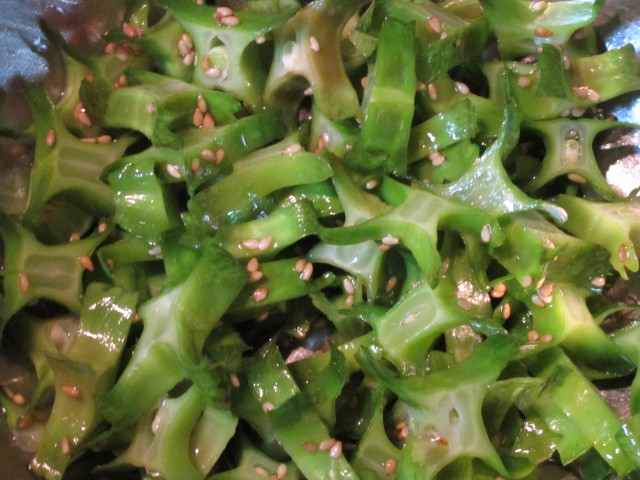 シャキシャキ歯ごたえがたまらない、四角豆のナムルの完成!