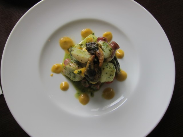 桃太郎ゴールド(黄色トマト)のガスパチョソースを周りに・・・・