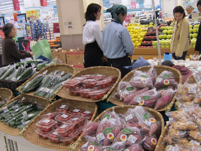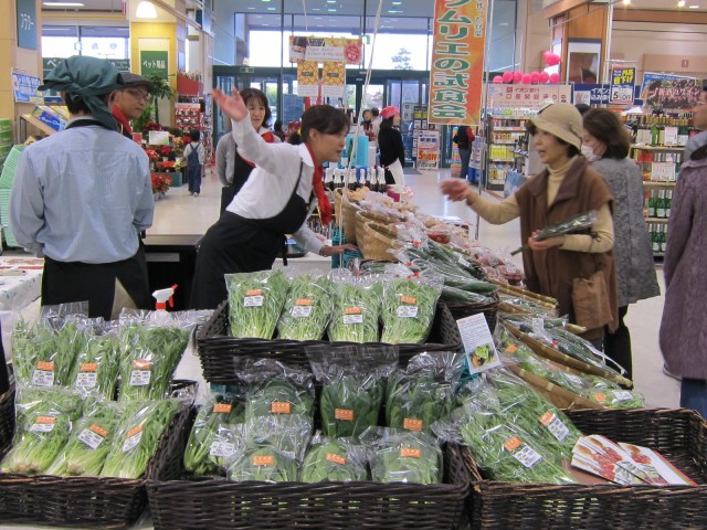お芋の天ぷらや、野菜ジャムなどの、試食コーナーには、朝から夕方まで、お客様がひっきりなし。