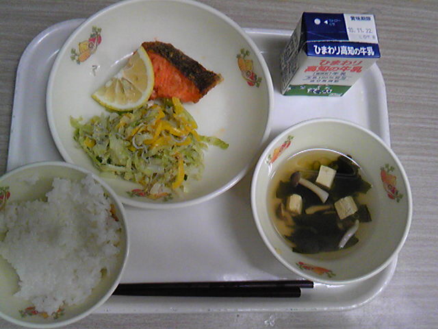 そして、今日の給食は秋刀魚の塩焼き、最近はやりの骨抜き魚ではありません!