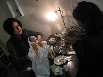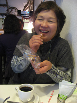 珈琲タイム。 「何か甘いもの欲しいね」 「あっ、これ食べる?」 「バレンタインデーに誰かに渡して下さいね」と 先ほど型抜きした生地を焼き上げてきてくれたクッキーを 何のためらいもなくその場で食べる私たち(笑)。 楽しかった☆ 松田君、また誘ってねー♪