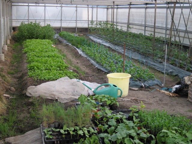 ナスやコリンキーも、ハウスの中で、すくすくと・・・