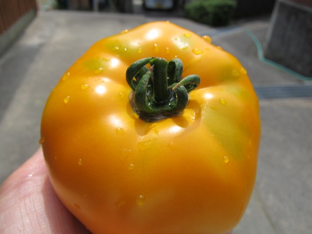 この、トマトは、黄色の大玉トマト。