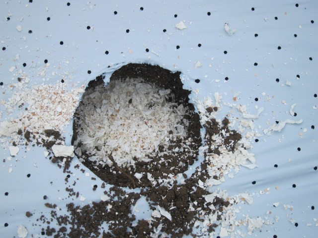 カキガラ石灰を入れます。