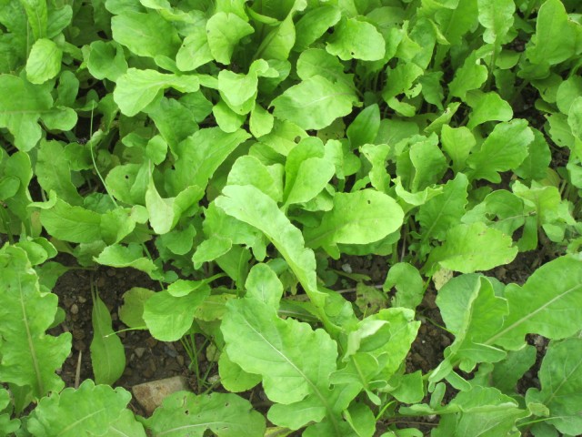 ルッコラも、雨に打たれながら、元気いっぱい。