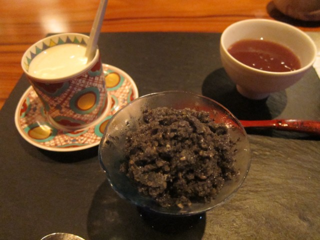 白いコーヒー、黒ゴマシャーベット、水羊羹