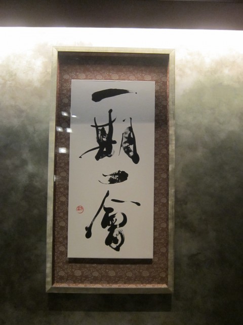 階段を降りると、「一期一会」の書が飾られ、相変わらずの