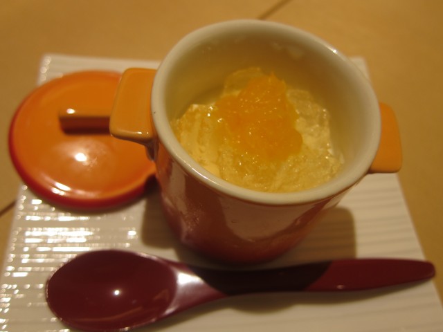 ショウガのパンナコッタには、小夏ジュレがのってて、