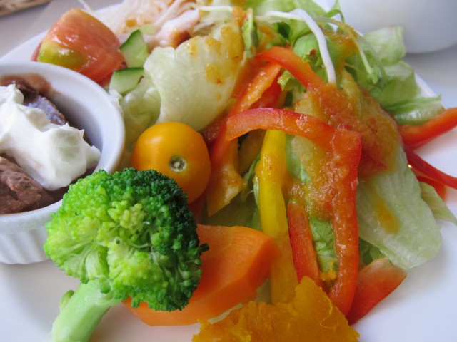 フレッシュサラダや、蒸野菜、オープンサンドや、デザートまであり、充実のサラダバー。