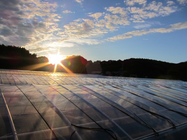 近所の、トマトや、キュウリのハウスも、前面ビニールが