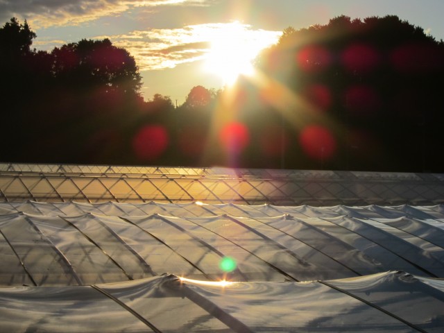 ハウスの屋根の上で、やっと肌寒い風を感じました。