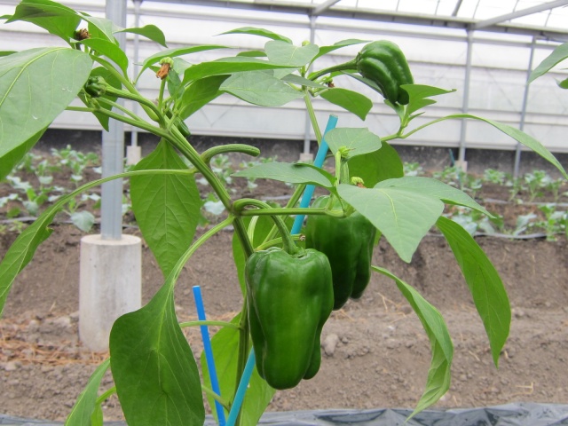 土佐市の岡本さんに、バジルの苗の代わりにりっぱなピーマンの苗をいただきました。